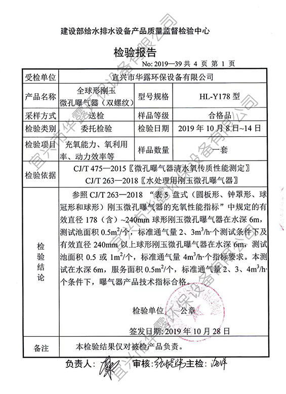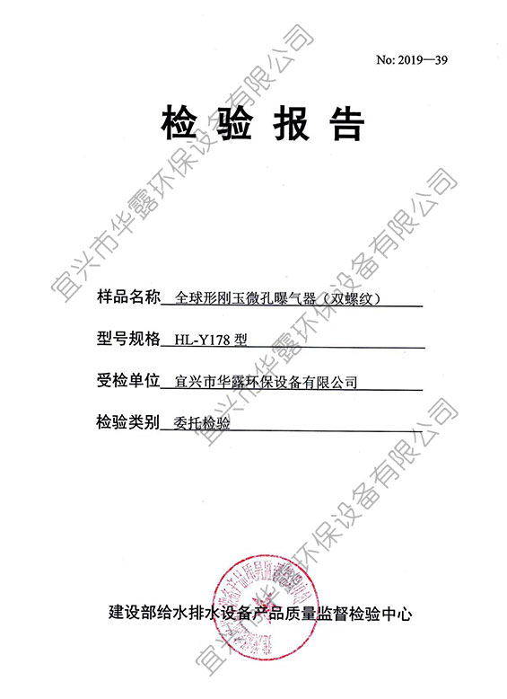 | 上一頁:鐘罩平頭盤式剛玉微孔曝氣器HL-C180型檢驗(yàn)報(bào)告 下一頁:盤式剛玉微孔曝氣器HL-F300型檢測報(bào)告 |
