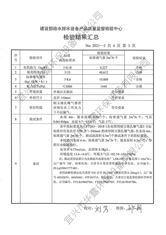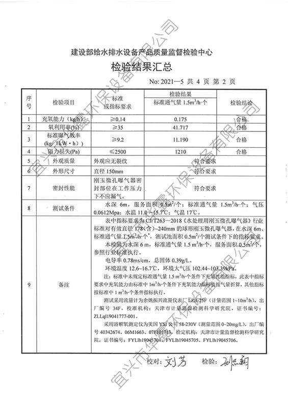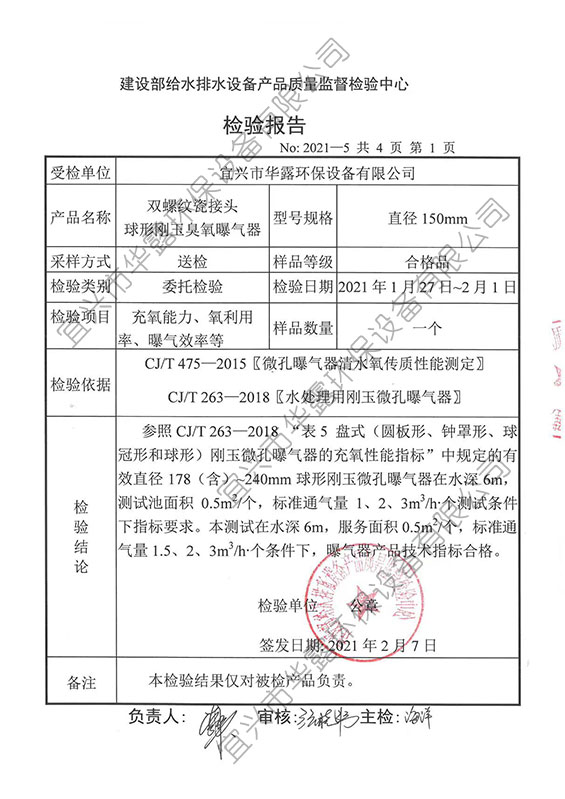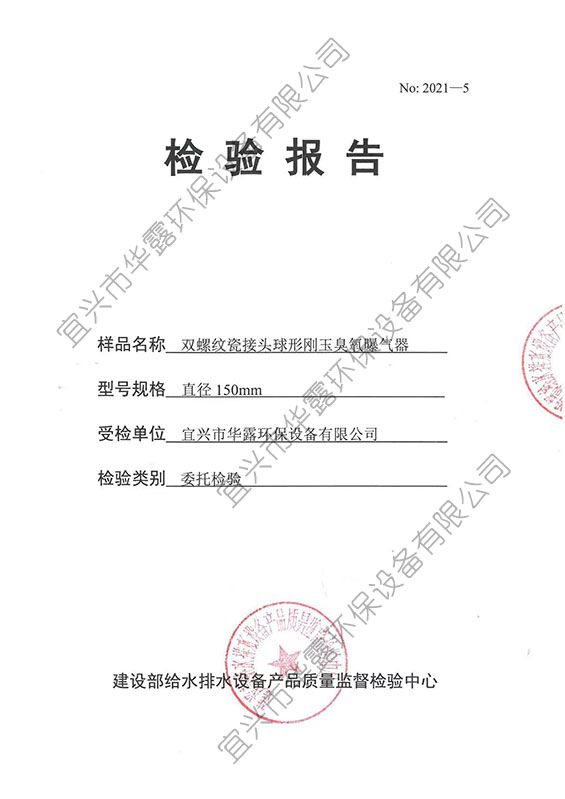 | 雙螺紋瓷接頭球形剛玉臭氧曝氣器HL-AC型檢驗(yàn)報(bào)告 |